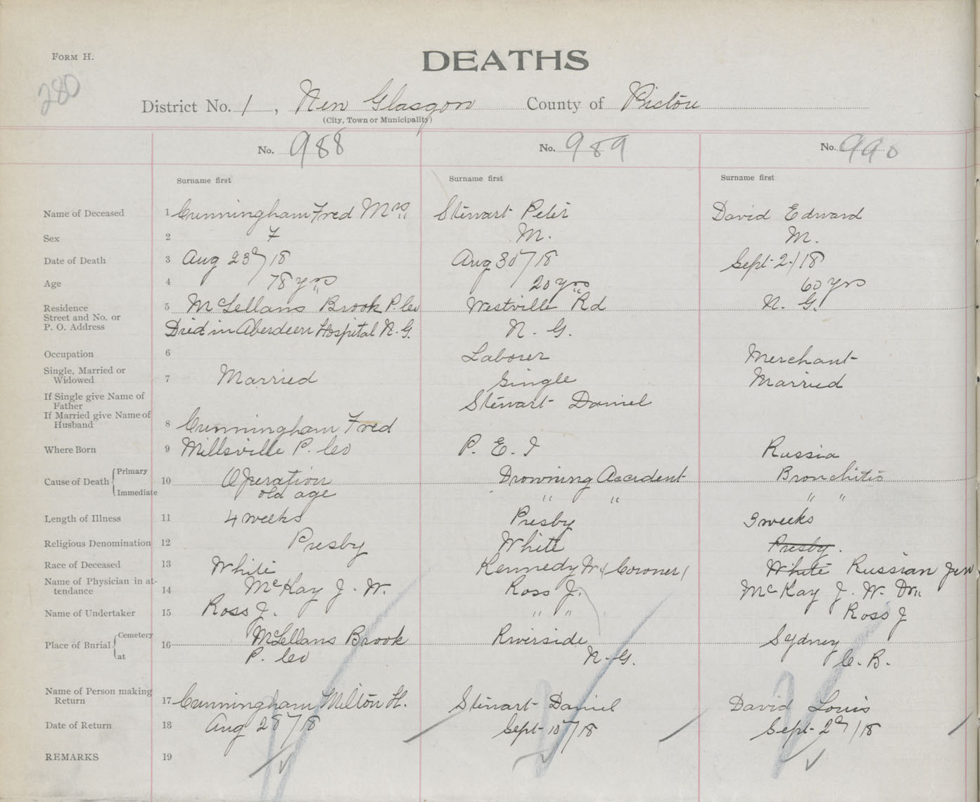 Death Registration: Year: 1918 book: 45 page: 280 number: 990