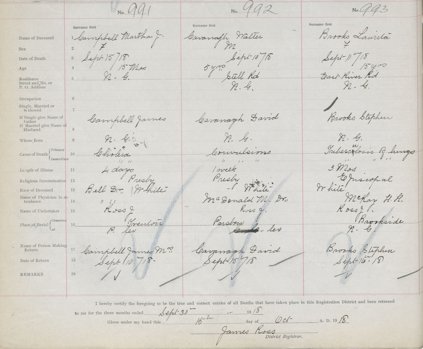 Death Registration: Year: 1918 book: 45 page: 280 number: 993