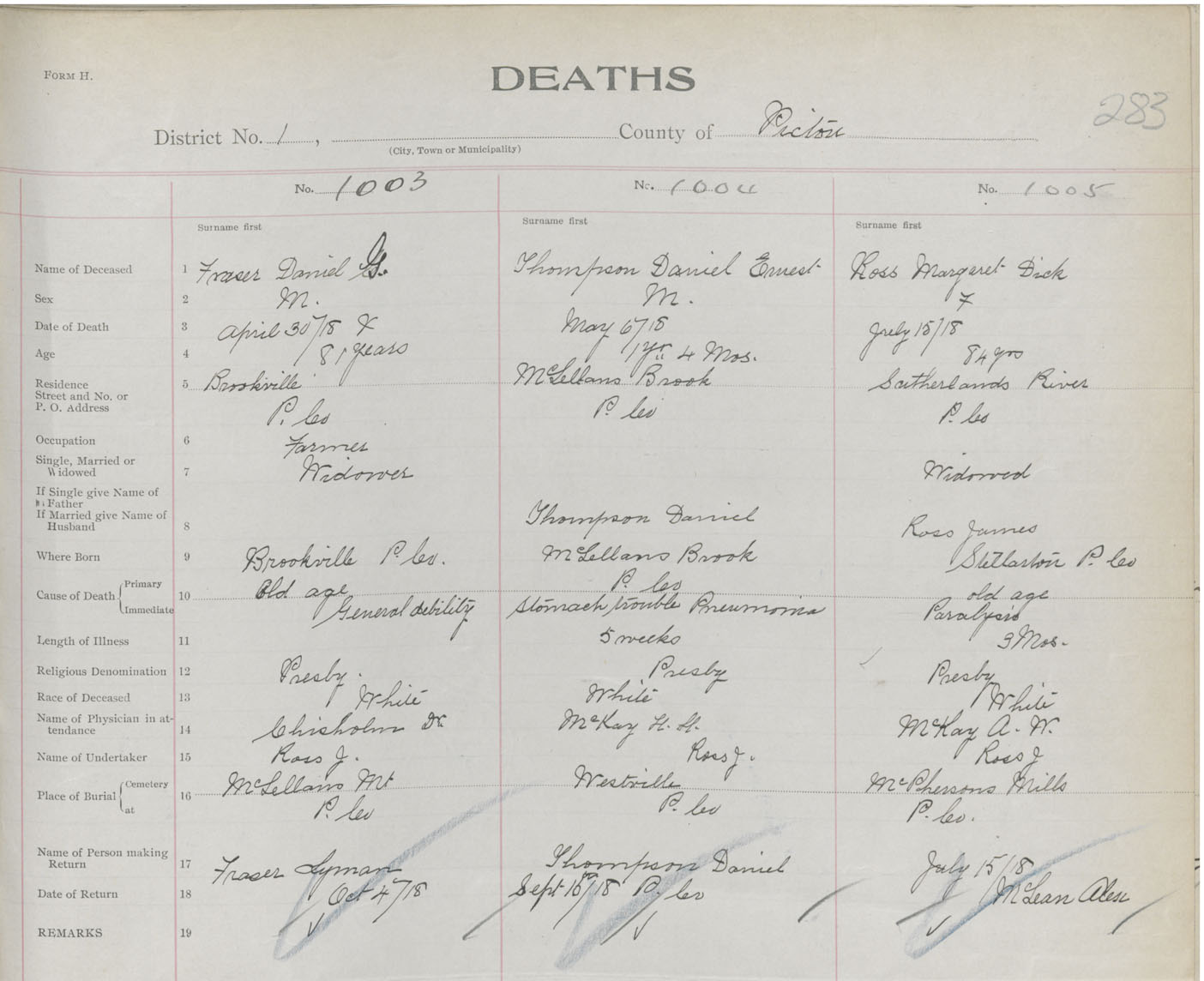 Death Registration: Year: 1918 book: 45 page: 283 number: 1005