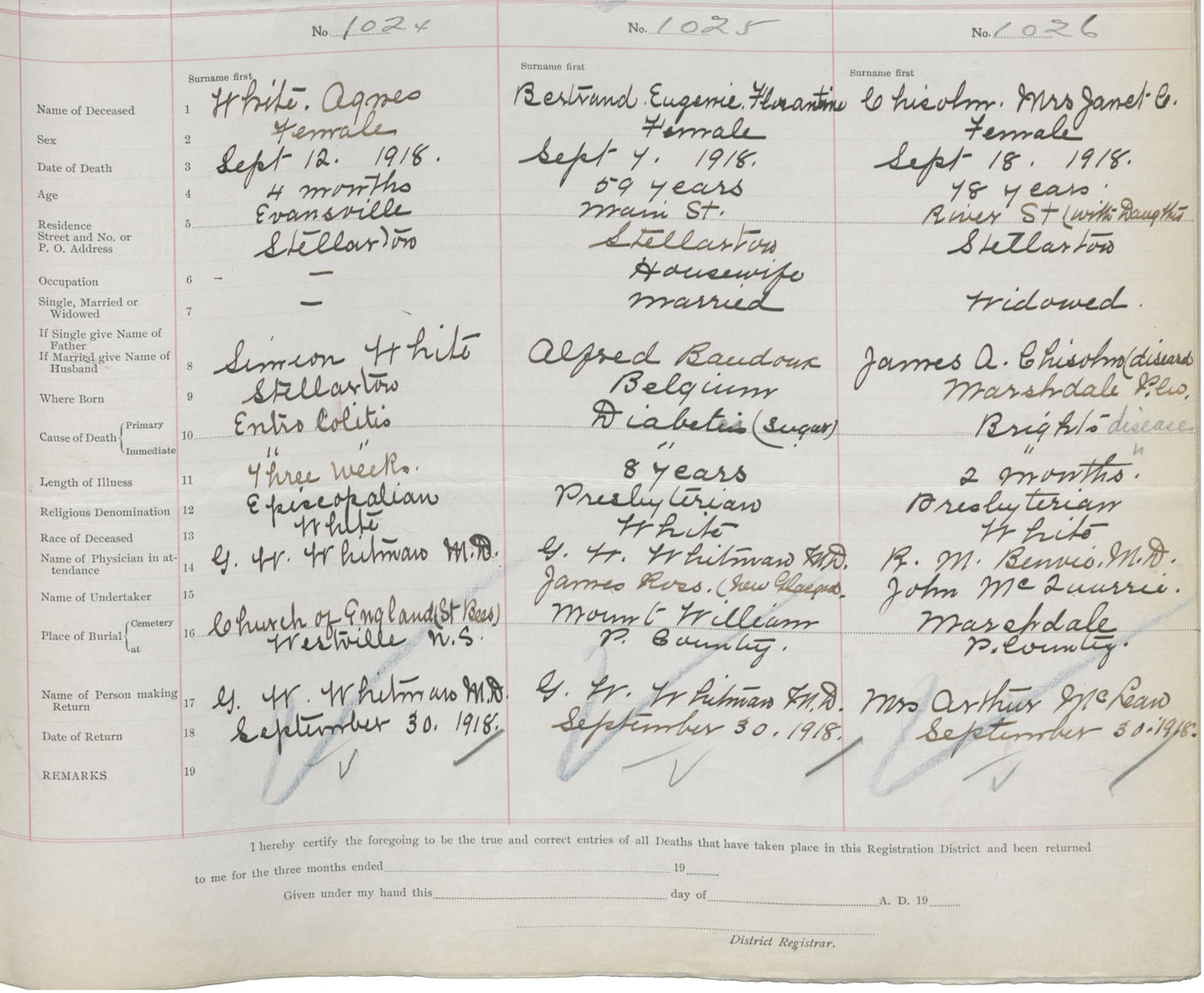 Death Registration: Year: 1918 book: 45 page: 287 number: 1026