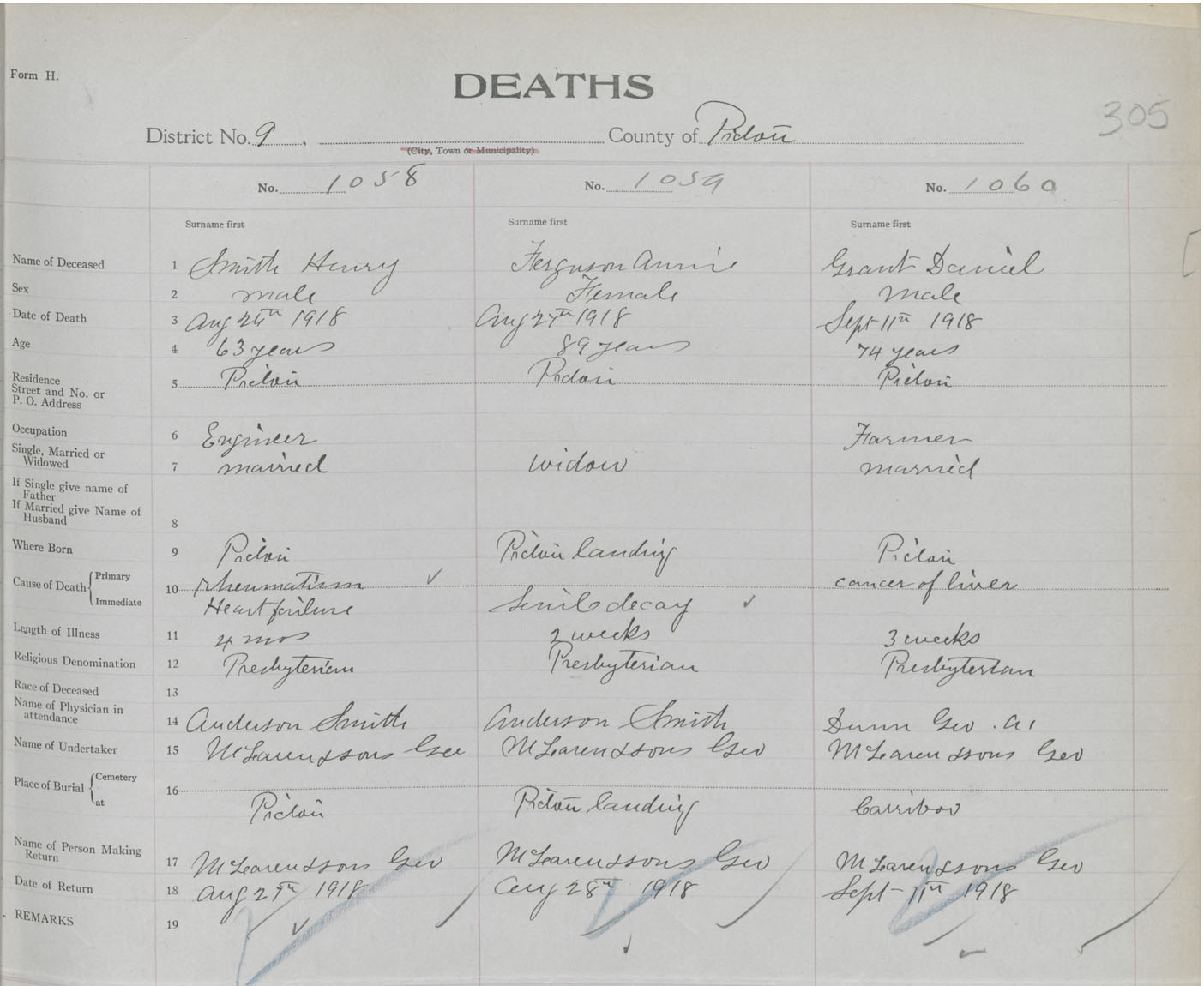 Death Registration: Year: 1918 book: 45 page: 305 number: 1058