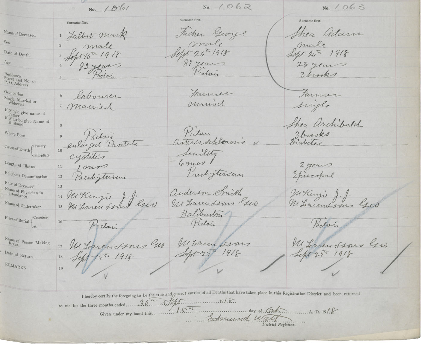 Death Registration: Year: 1918 book: 45 page: 305 number: 1061