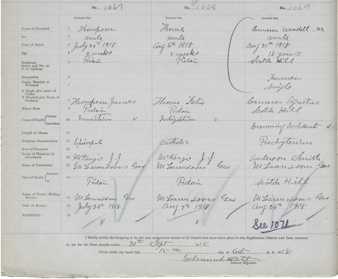 Death Registration: Year: 1918 book: 45 page: 306 number: 1067