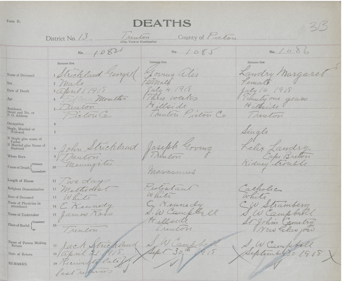 Death Registration: Year: 1918 book: 45 page: 313 number: 1084