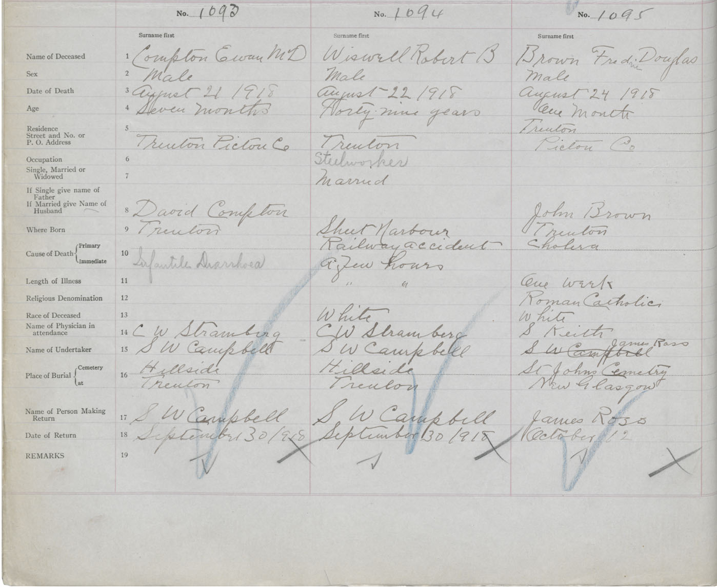 Death Registration: Year: 1918 book: 45 page: 314 number: 1093