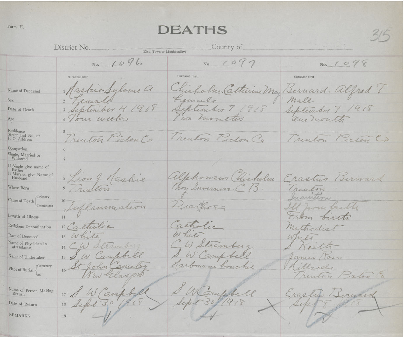 Death Registration: Year: 1918 book: 45 page: 315 number: 1096