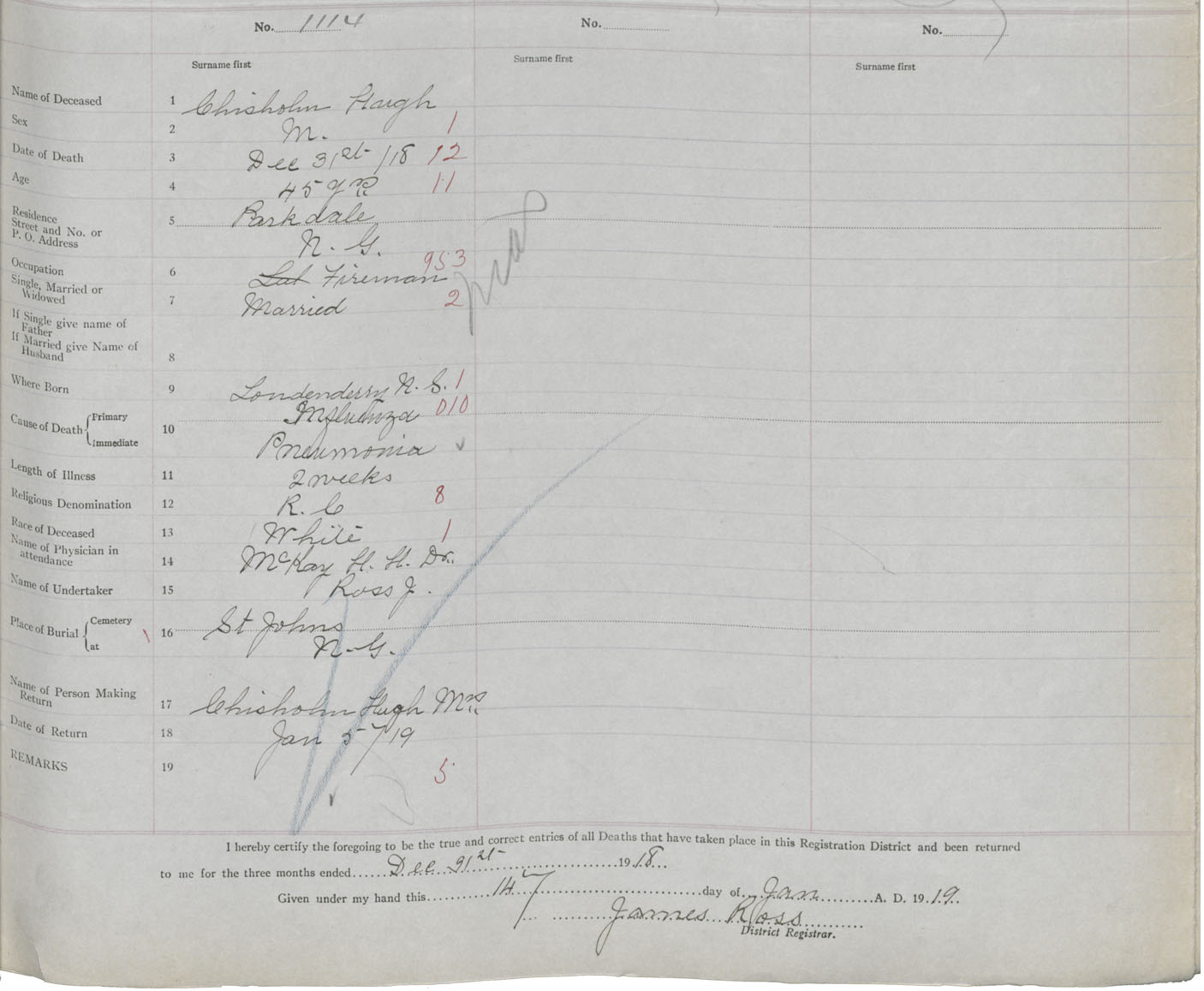 Death Registration: Year: 1918 book: 45 page: 319 number: 1114