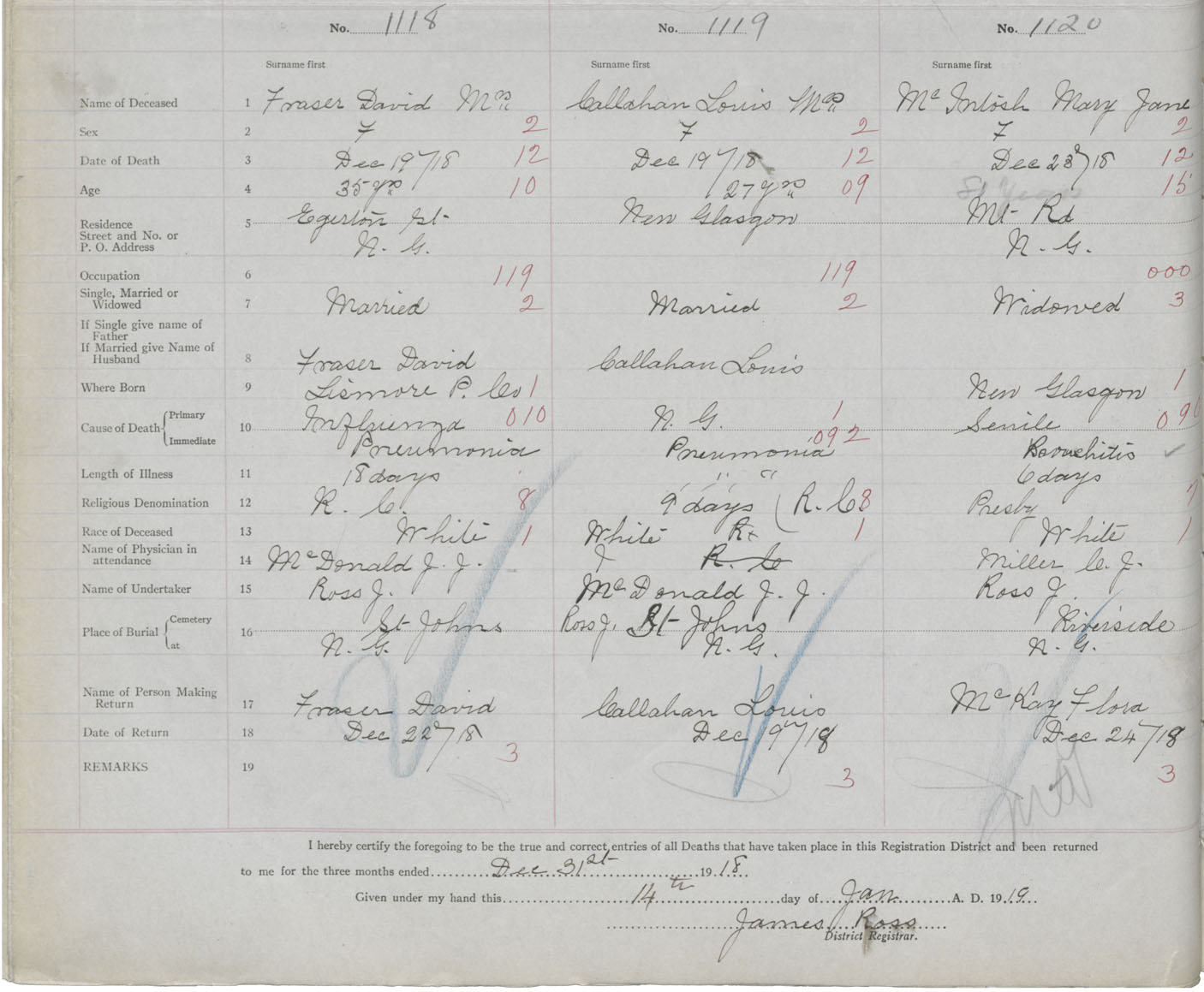 Death Registration: Year: 1918 book: 45 page: 320 number: 1118