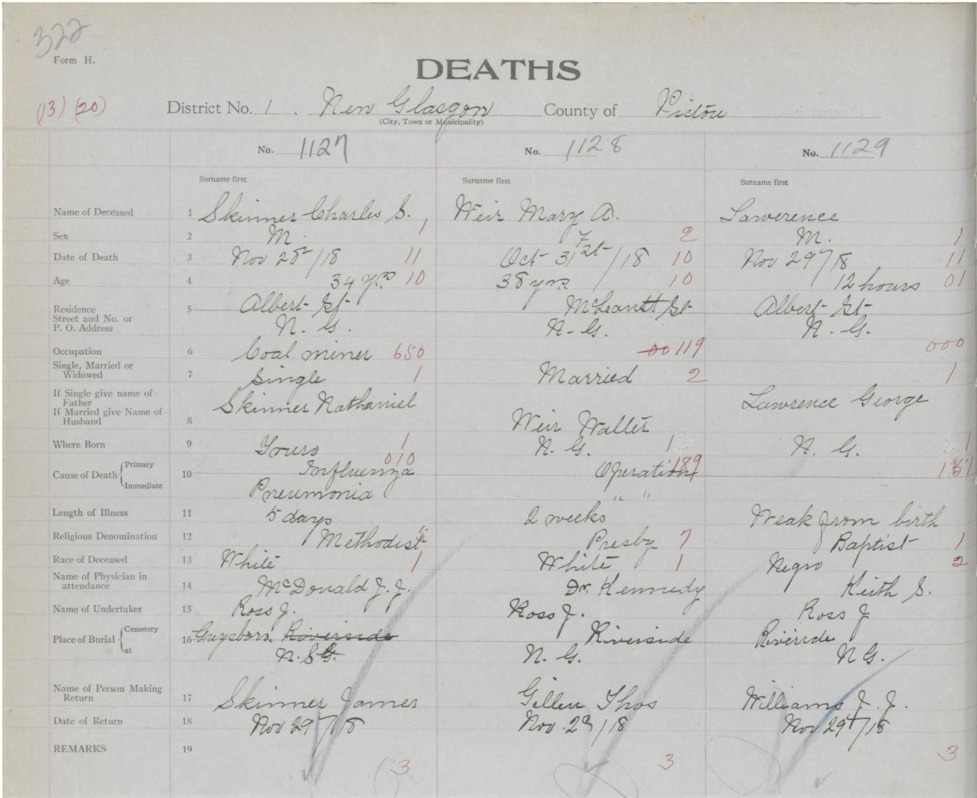 Death Registration: Year: 1918 book: 45 page: 322 number: 1127