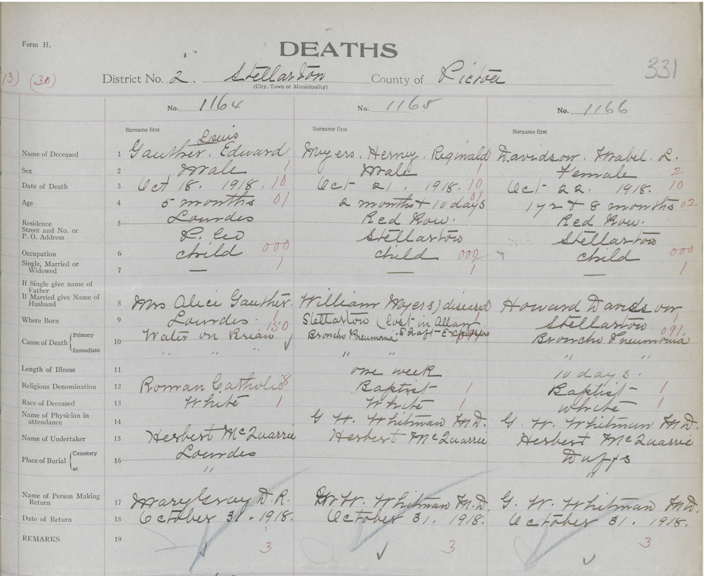 Death Registration: Year: 1918 book: 45 page: 331 number: 1164