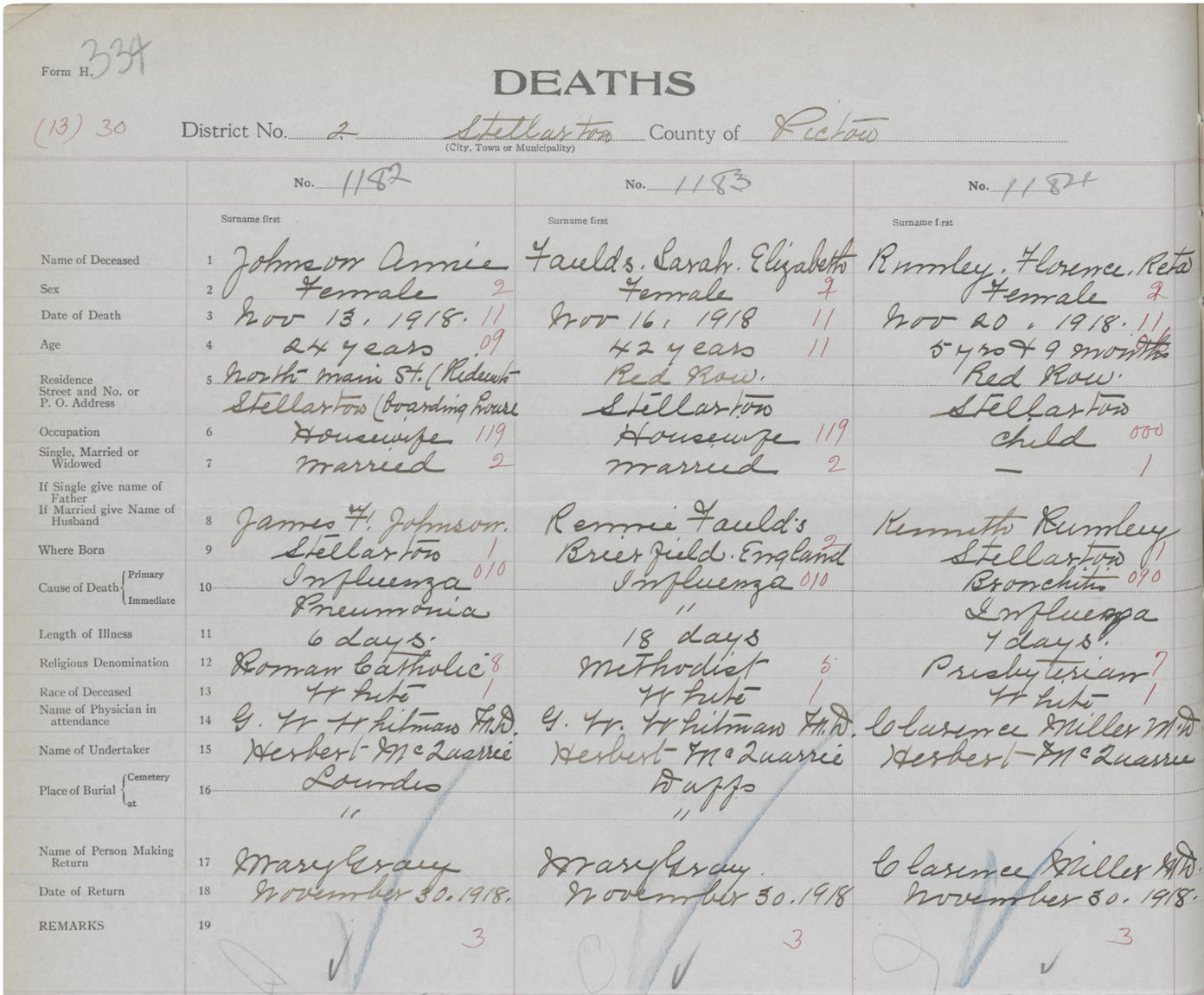 Death Registration: Year: 1918 book: 45 page: 334 number: 1182