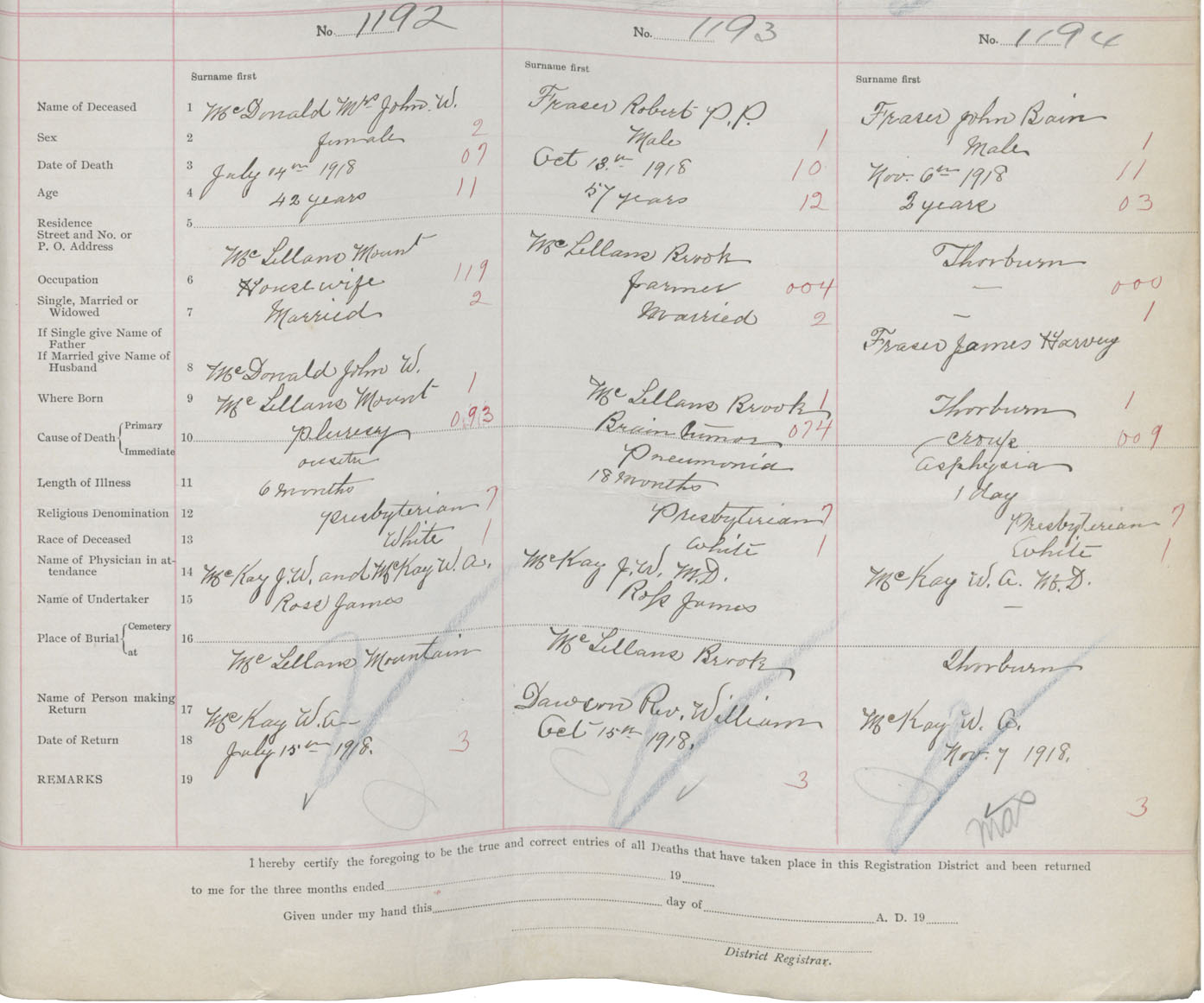 Death Registration: Year: 1918 book: 45 page: 335 number: 1192