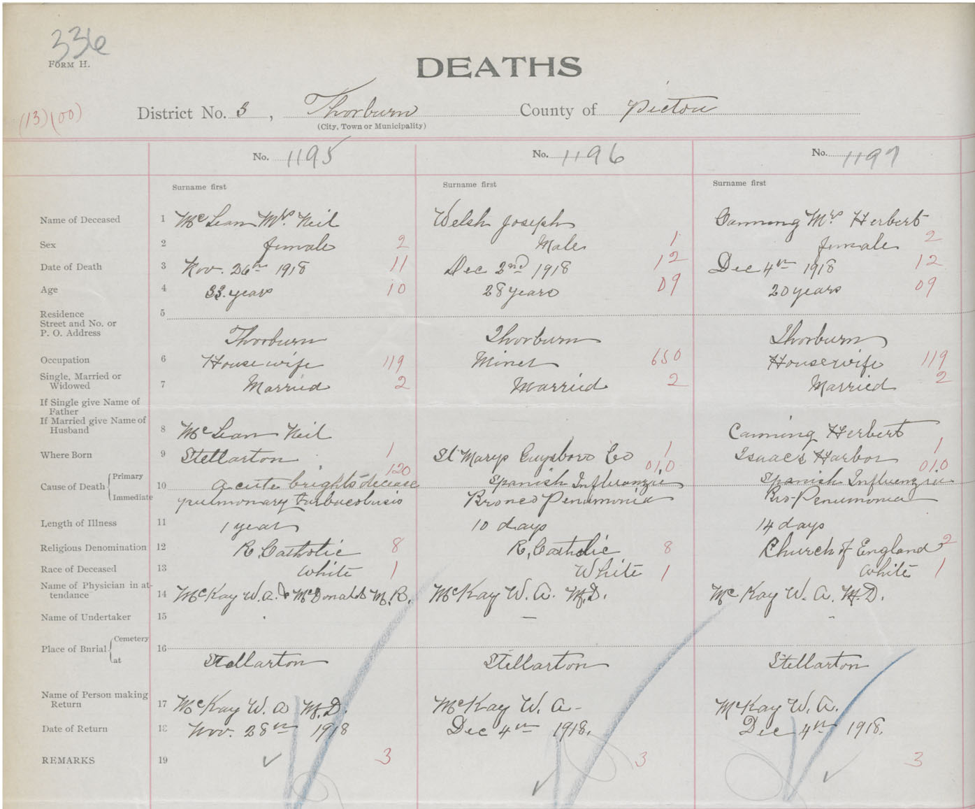 Death Registration: Year: 1918 book: 45 page: 336 number: 1195