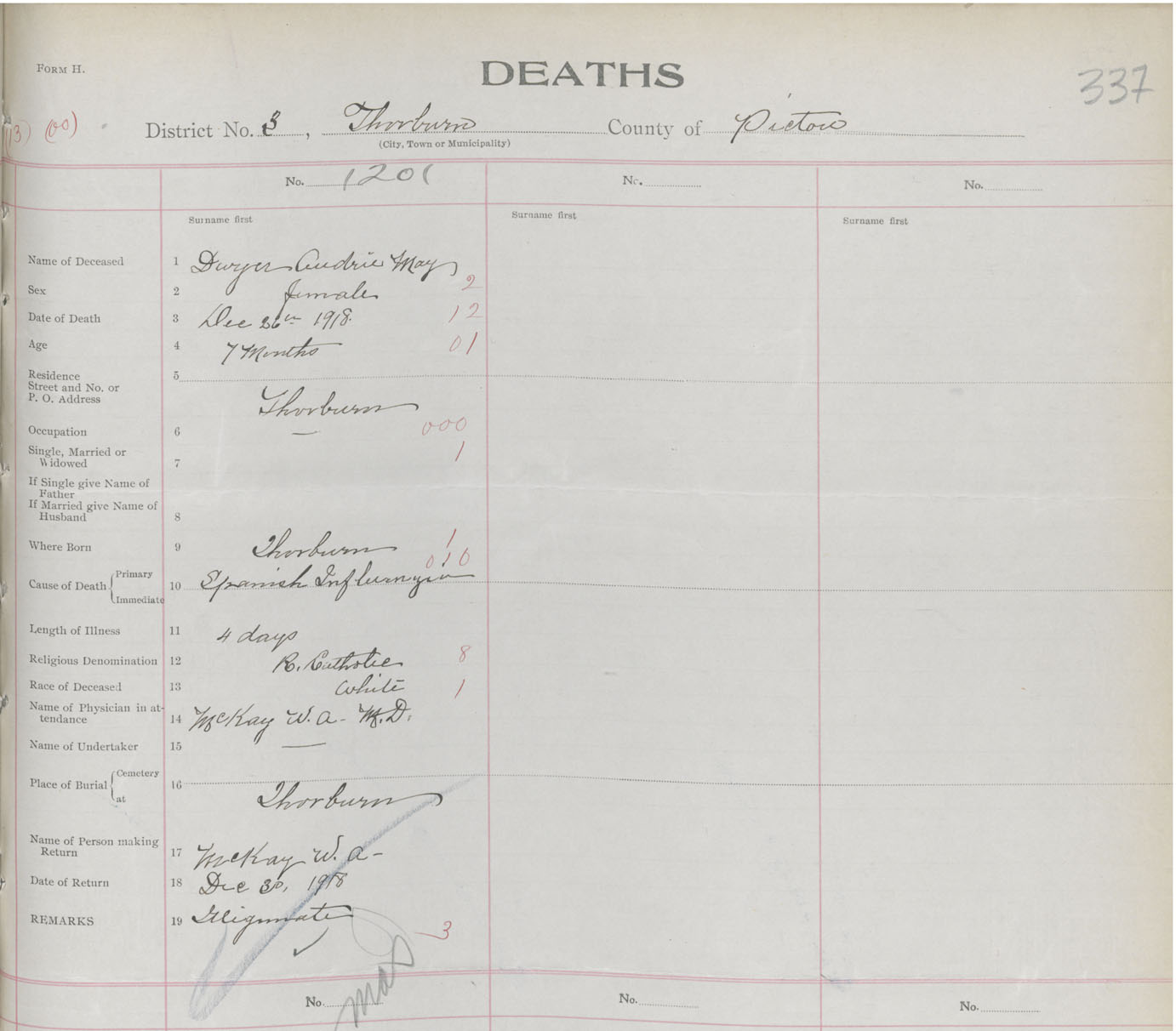 Death Registration: Year: 1918 book: 45 page: 337 number: 1201