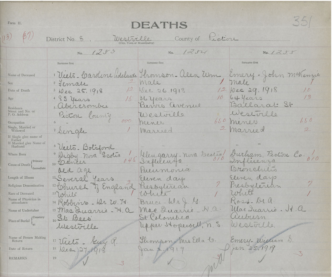 Death Registration: Year: 1918 book: 45 page: 351 number: 1255