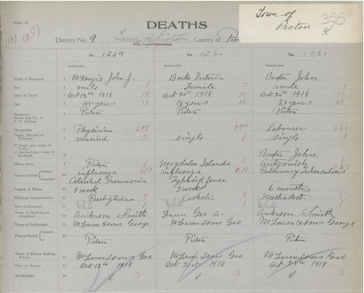 Death Registration: Year: 1918 book: 45 page: 355 number: 1261