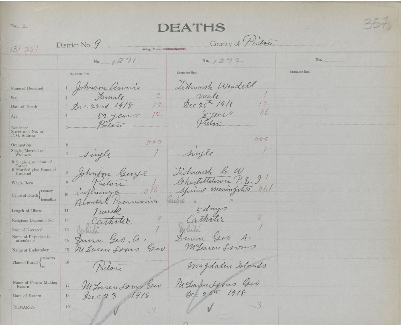 Death Registration: Year: 1918 book: 45 page: 357 number: 1272
