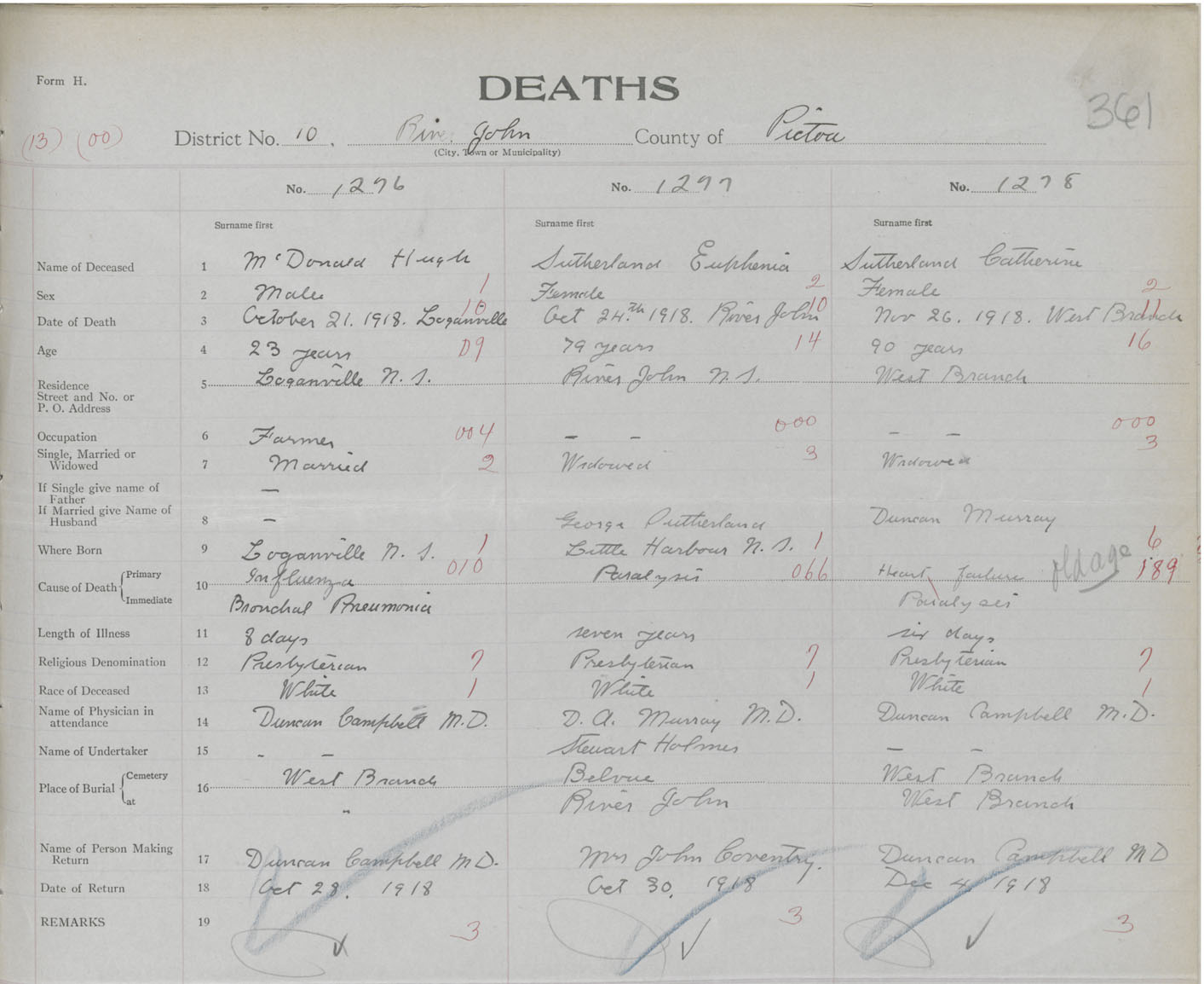 Death Registration: Year: 1918 book: 45 page: 361 number: 1278