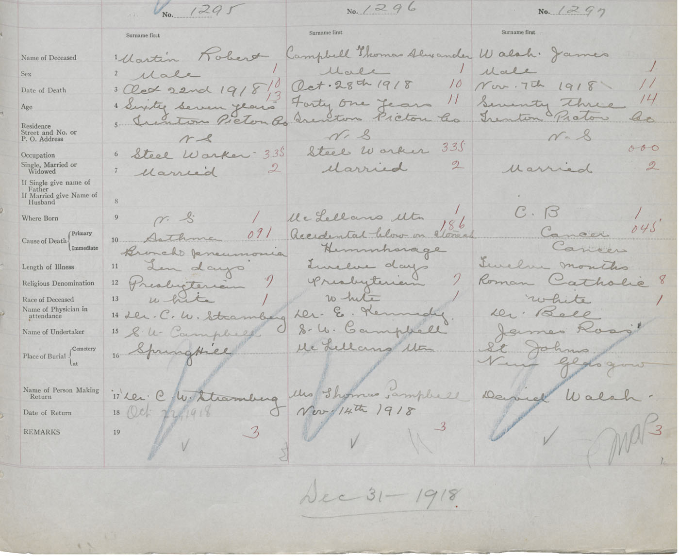 Death Registration: Year: 1918 book: 45 page: 369 number: 1297