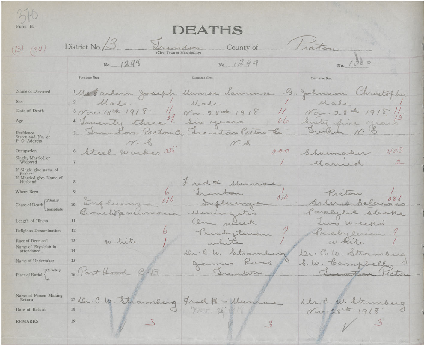 Death Registration: Year: 1918 book: 45 page: 370 number: 1300