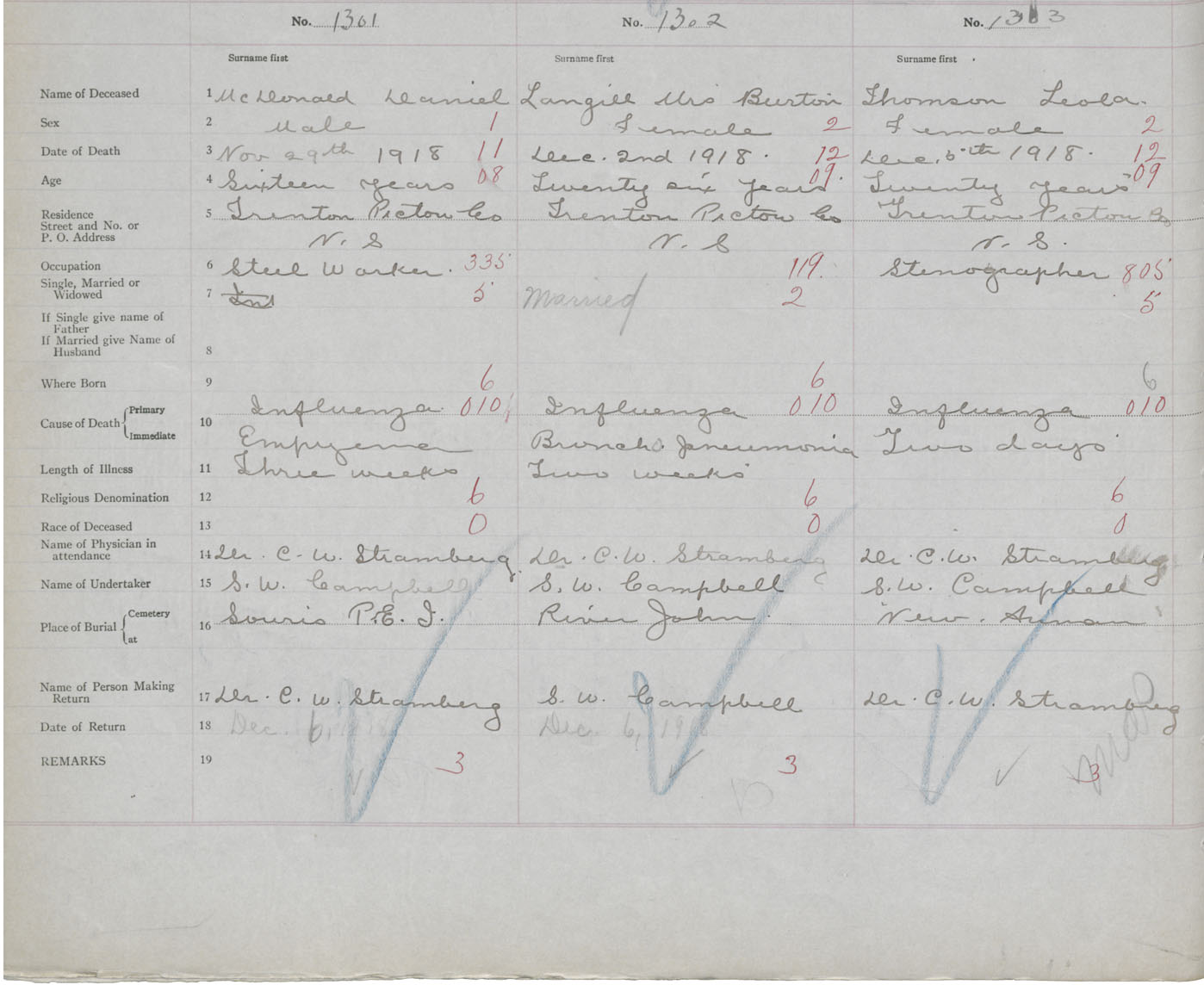 Death Registration: Year: 1918 book: 45 page: 370 number: 1303