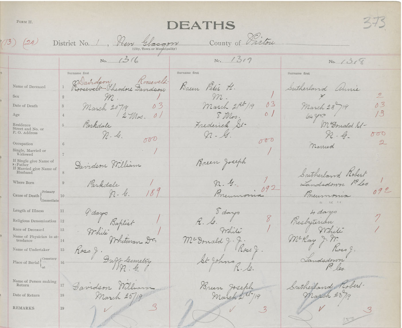 Death Registration: Year: 1918 book: 45 page: 373 number: 1318