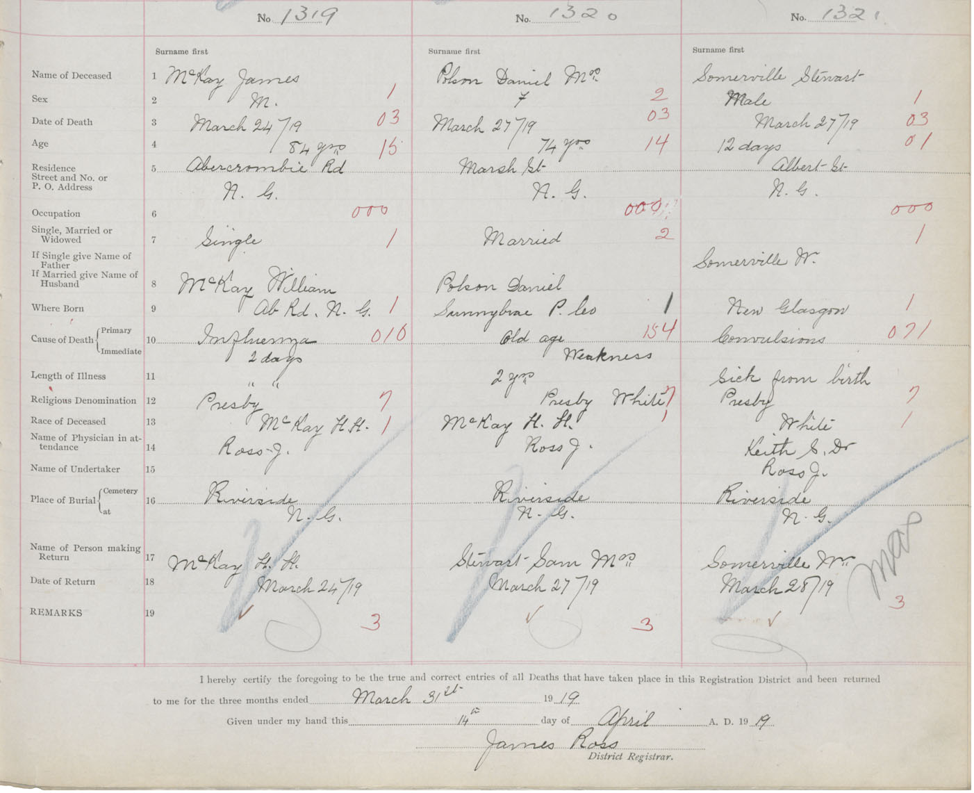 Death Registration: Year: 1919 book: 45 page: 373 number: 1321