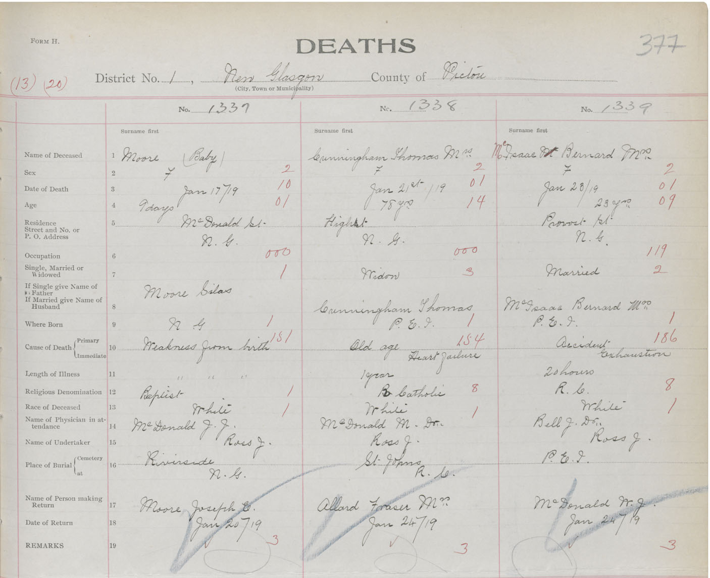 Death Registration: Year: 1919 book: 45 page: 377 number: 1339