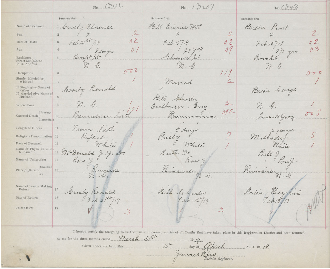 Death Registration: Year: 1919 book: 45 page: 378 number: 1348