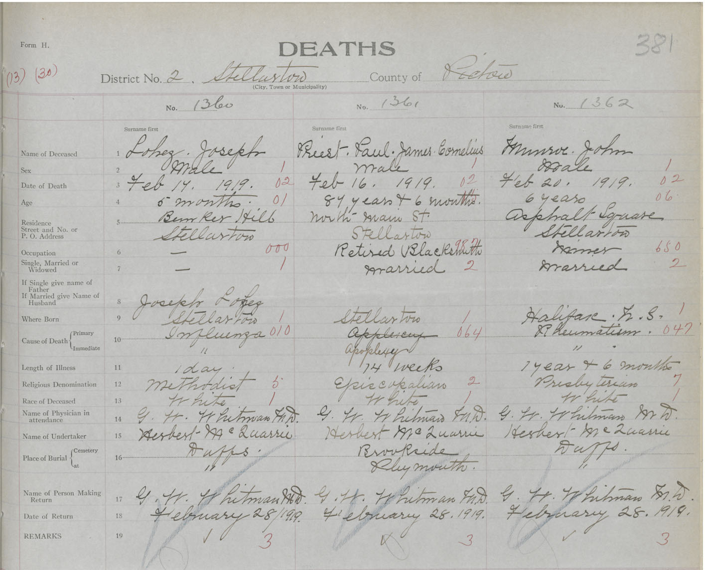 Death Registration: Year: 1919 book: 45 page: 381 number: 1362