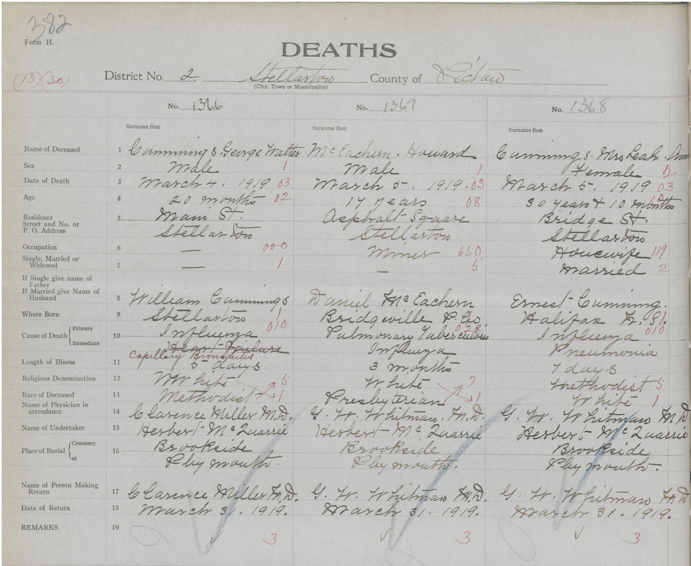 Death Registration: Year: 1919 book: 45 page: 382 number: 1368