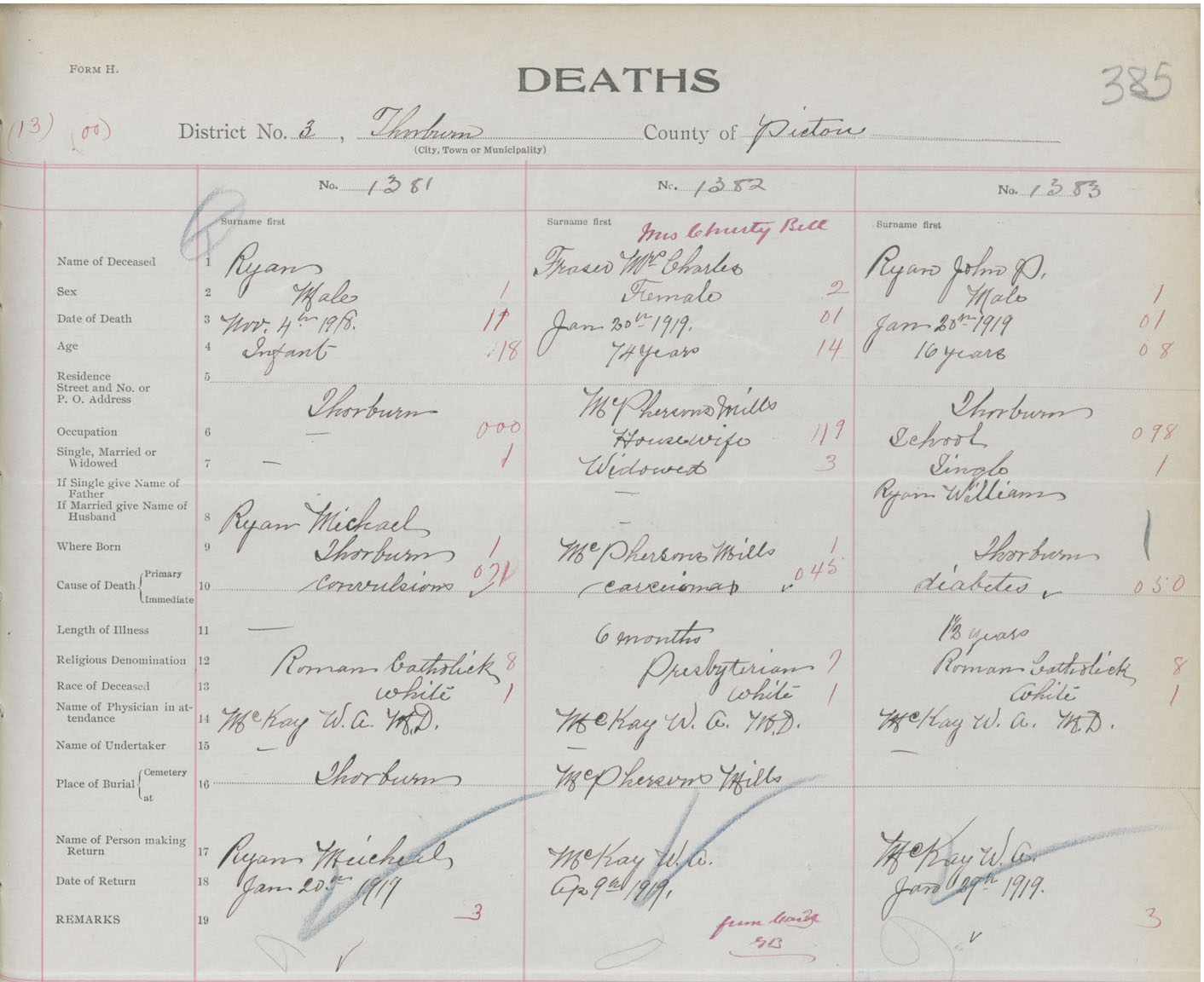 Death Registration: Year: 1919 book: 45 page: 385 number: 1383