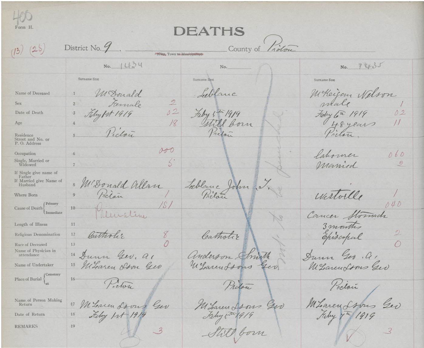 Death Registration: Year: 1919 book: 45 page: 400 number: 1434