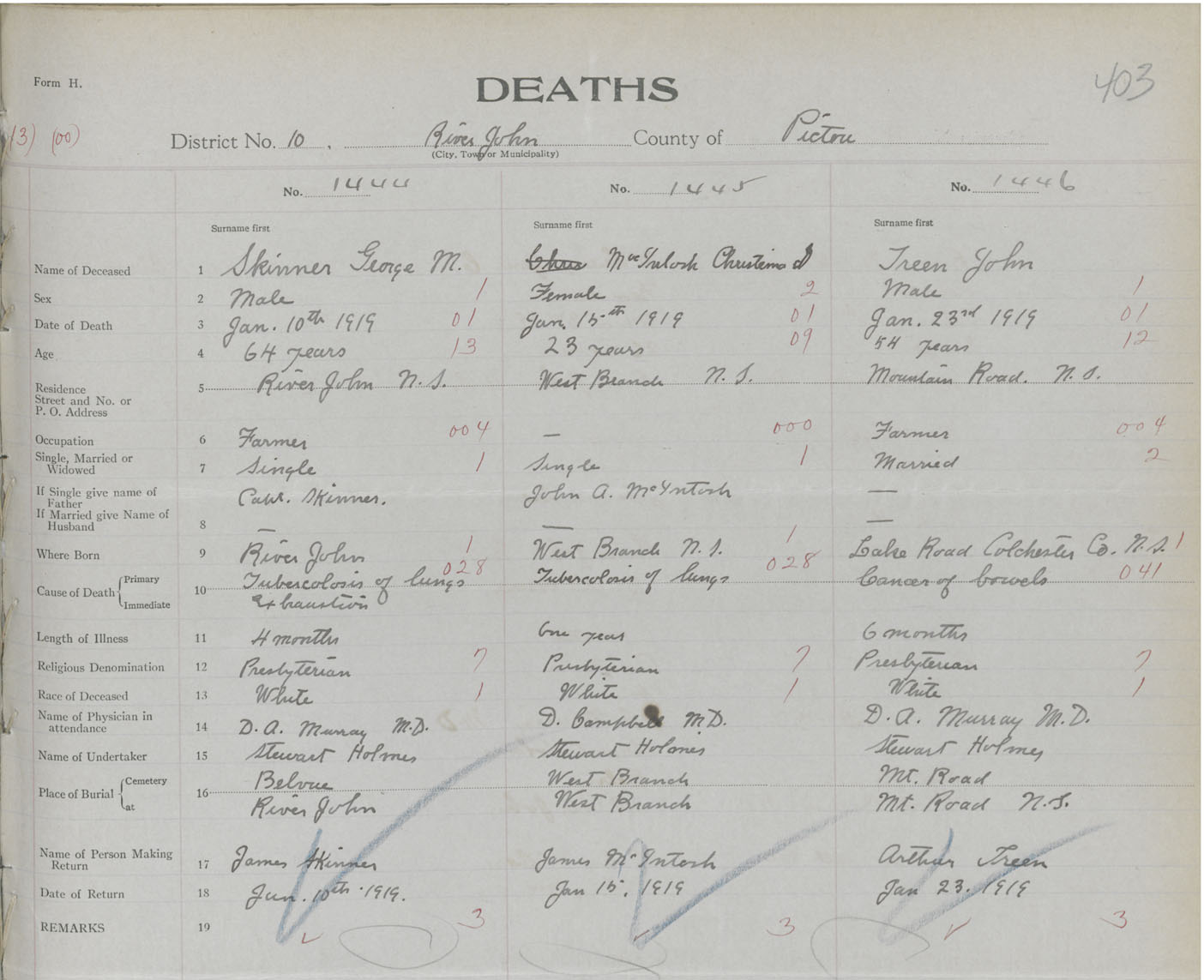 Death Registration: Year: 1919 book: 45 page: 403 number: 1444