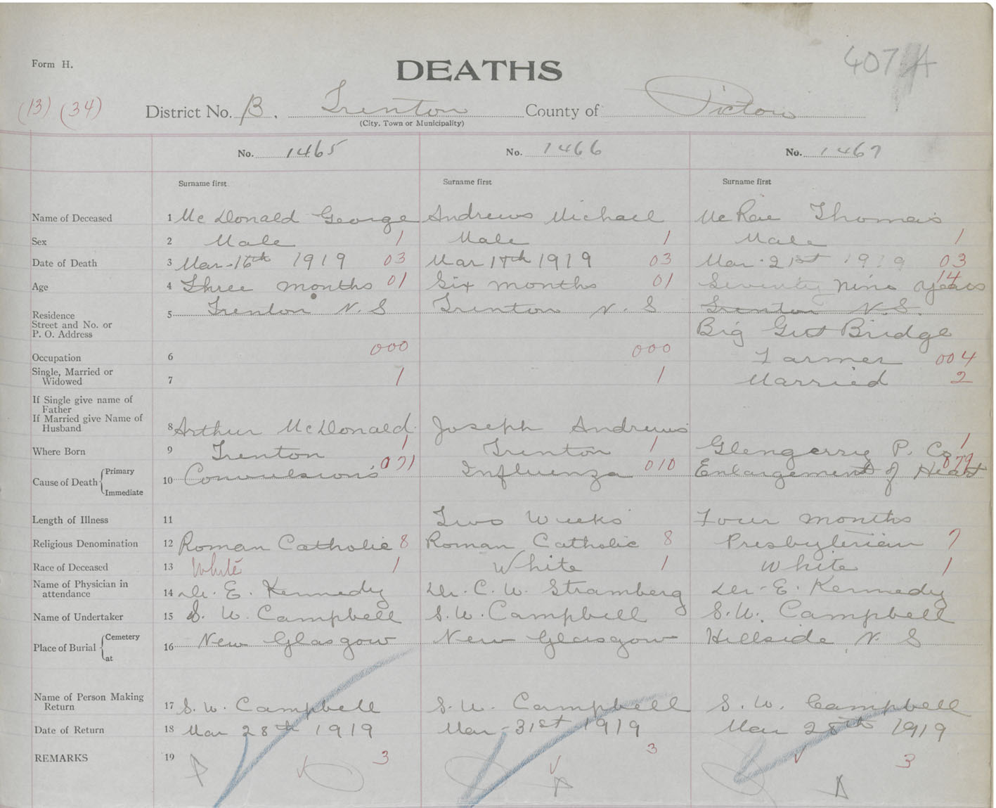 Death Registration: Year: 1919 book: 45 page: 10407 number: 1465