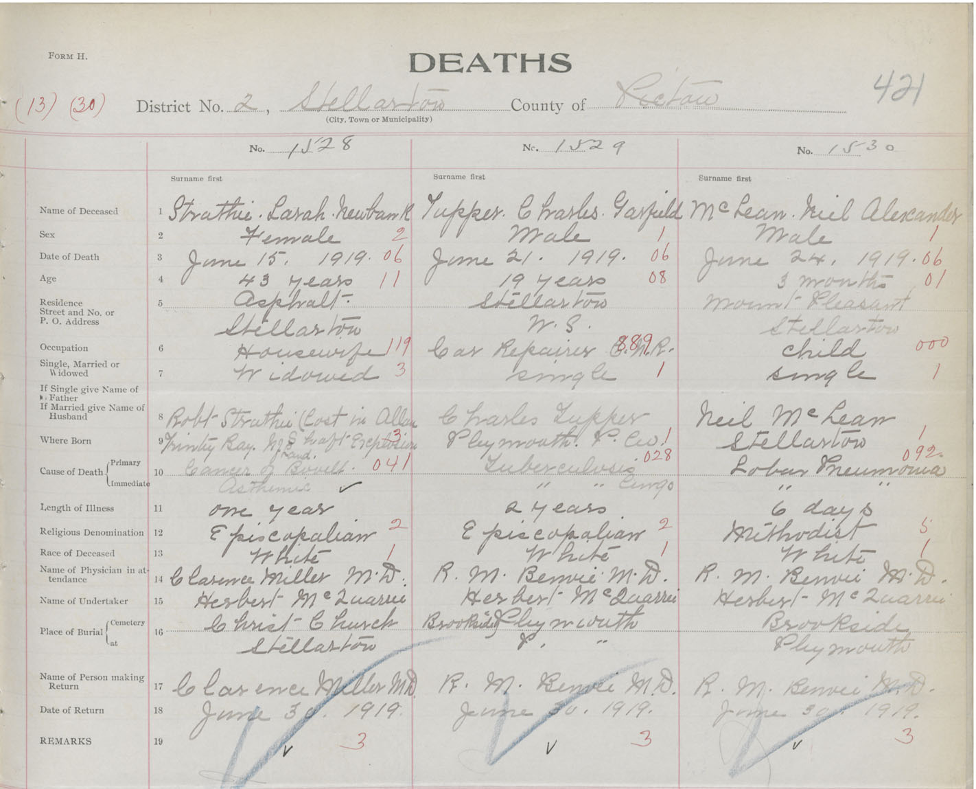 Death Registration: Year: 1919 book: 45 page: 421 number: 1528