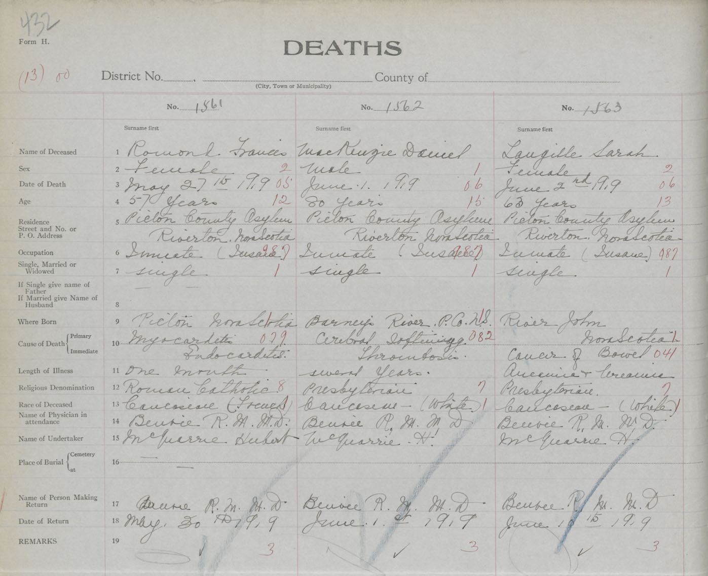 Death Registration: Year: 1919 book: 45 page: 432 number: 1561