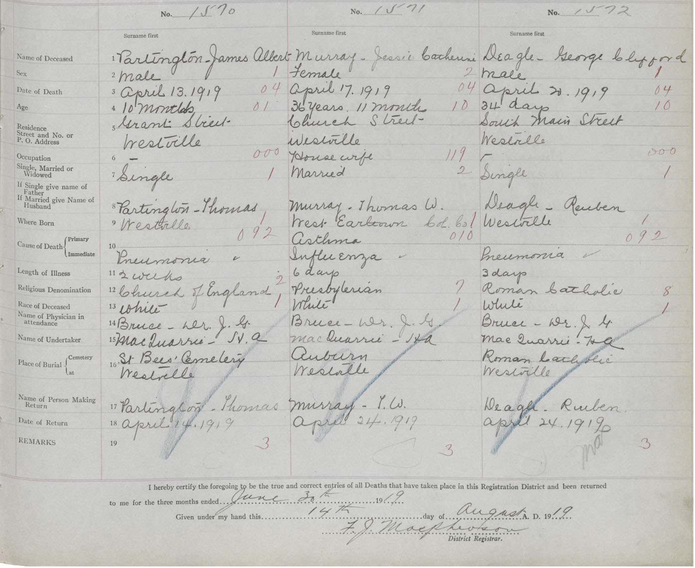 Death Registration: Year: 1919 book: 45 page: 435 number: 1570