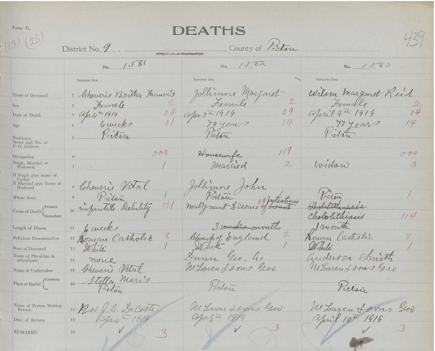 Death Registration: Year: 1919 book: 45 page: 439 number: 1581