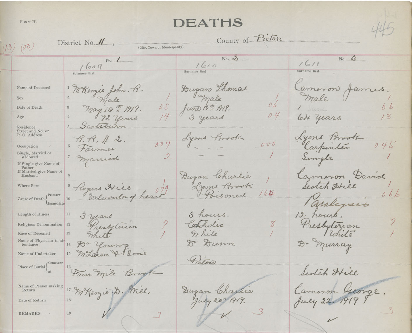 Death Registration: Year: 1919 book: 45 page: 445 number: 1609