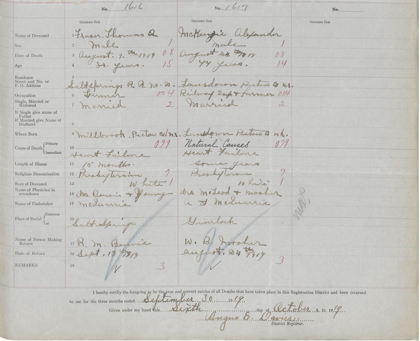 Death Registration: Year: 1919 book: 45 page: 447 number: 1616