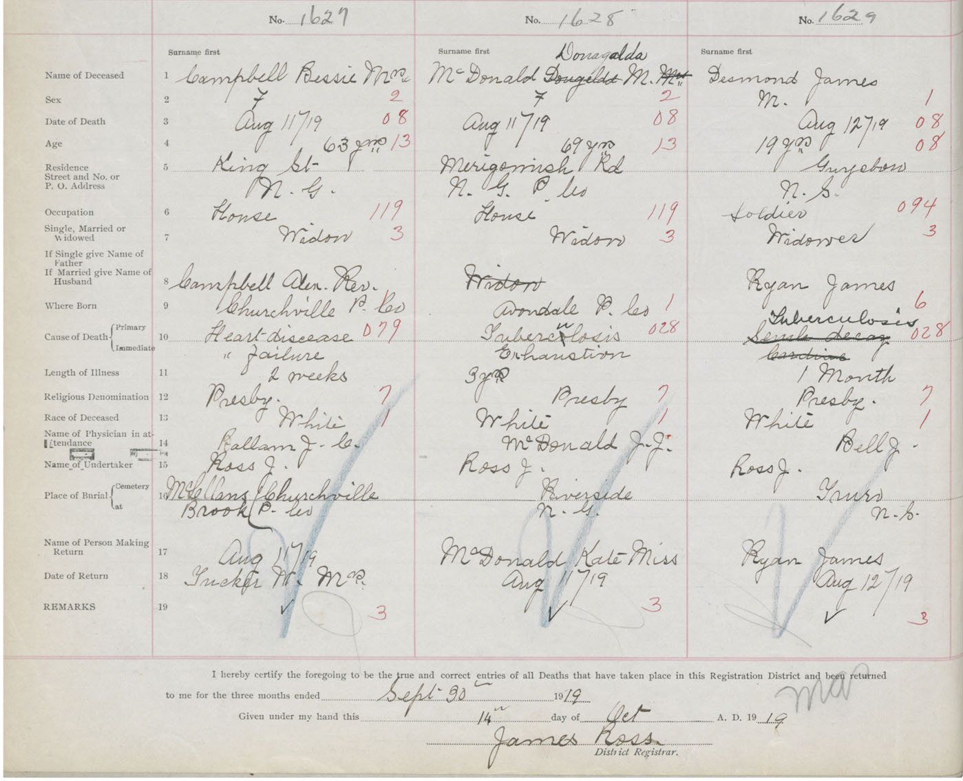 Death Registration: Year: 1919 book: 45 page: 450 number: 1627