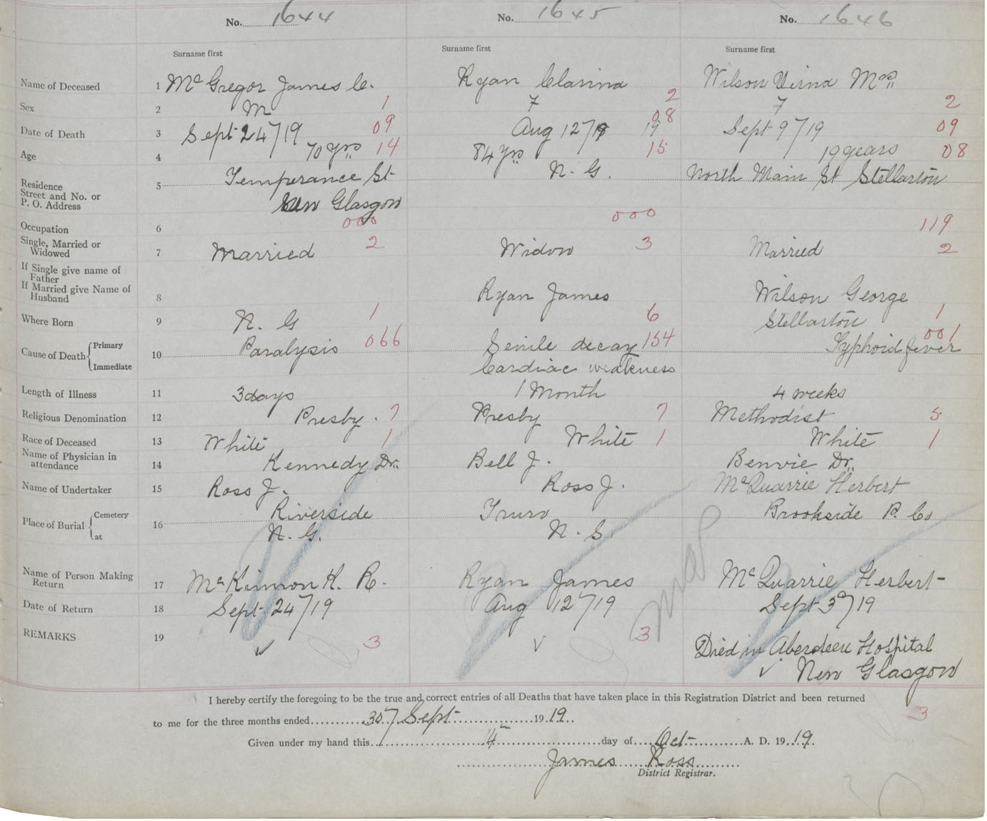 Death Registration: Year: 1919 book: 45 page: 453 number: 1644