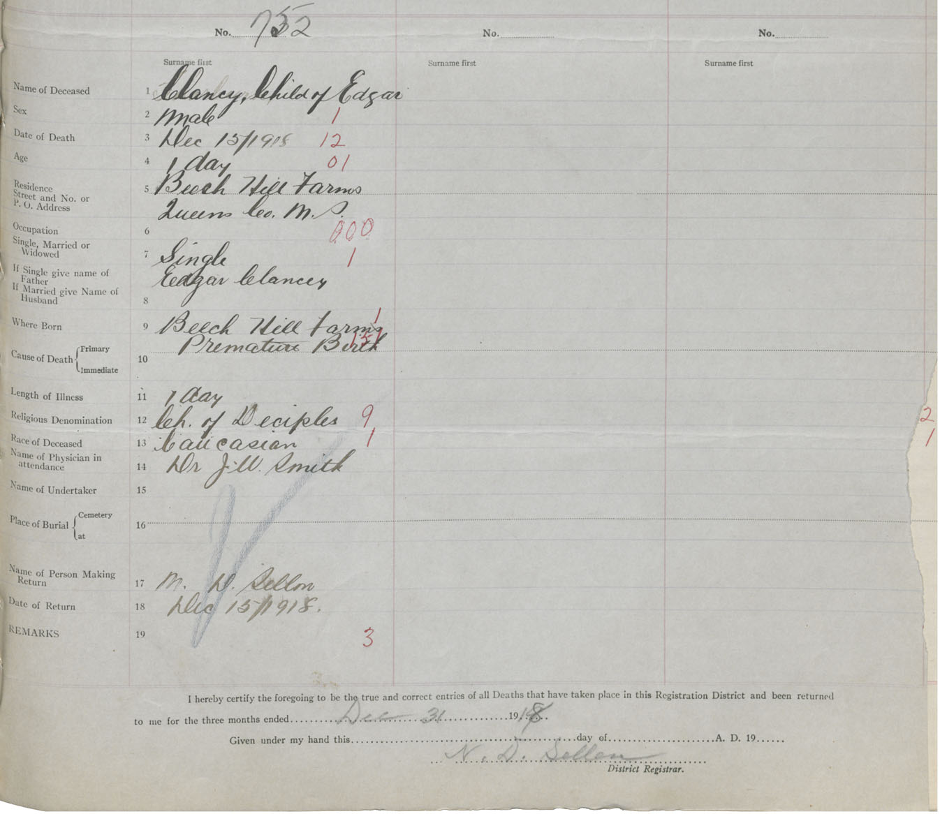 Death Registration: Year: 1918 book: 46 page: 325 number: 752