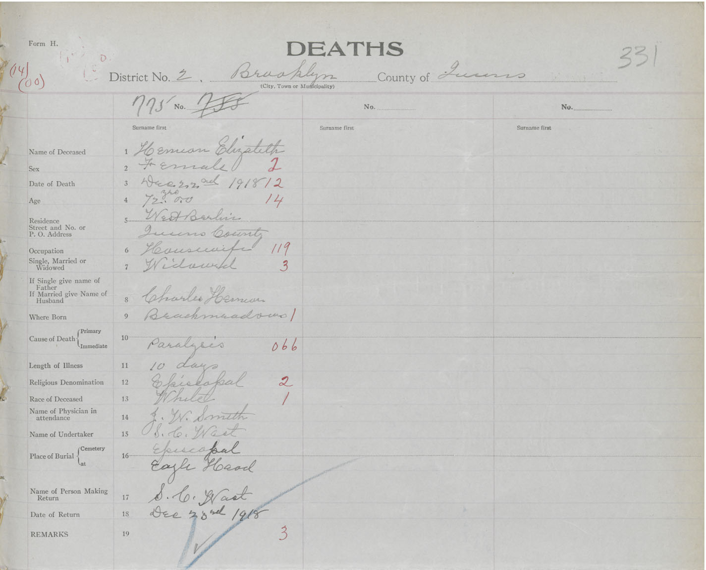 Death Registration: Year: 1918 book: 46 page: 331 number: 775