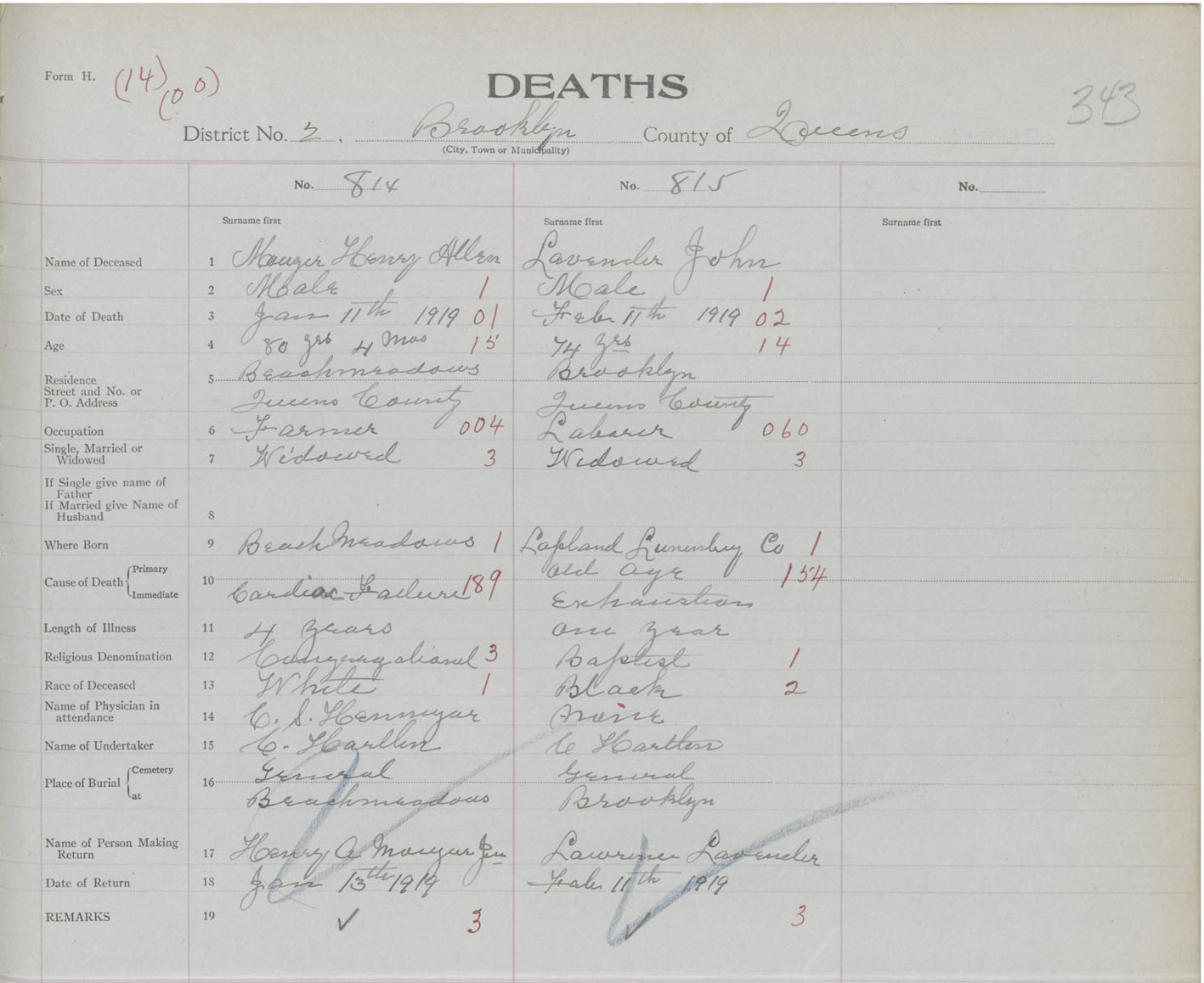Death Registration: Year: 1919 book: 46 page: 343 number: 815