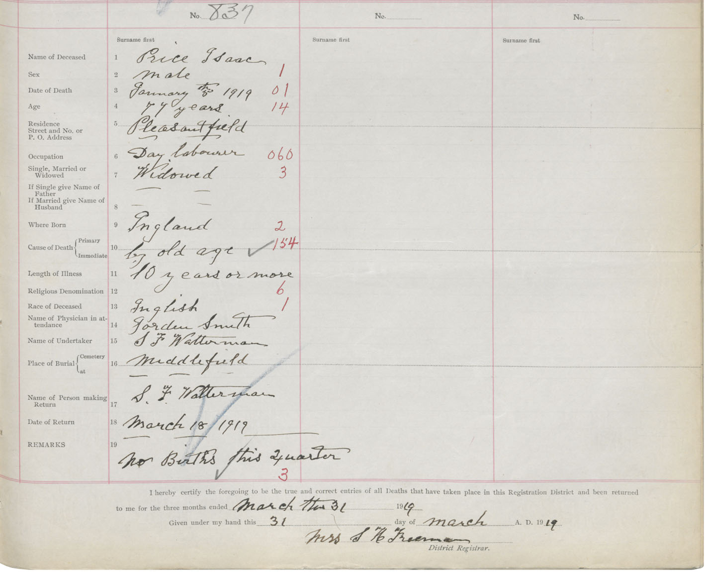 Death Registration: Year: 1919 book: 46 page: 351 number: 837