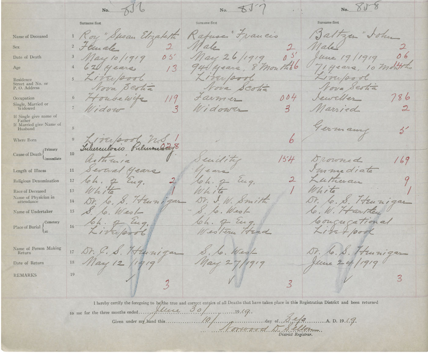 Death Registration: Year: 1919 book: 46 page: 358 number: 858