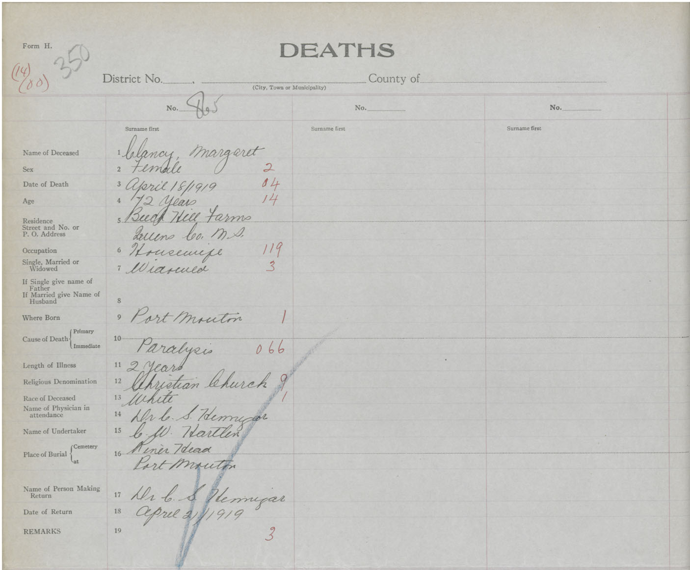Death Registration: Year: 1919 book: 46 page: 360 number: 865