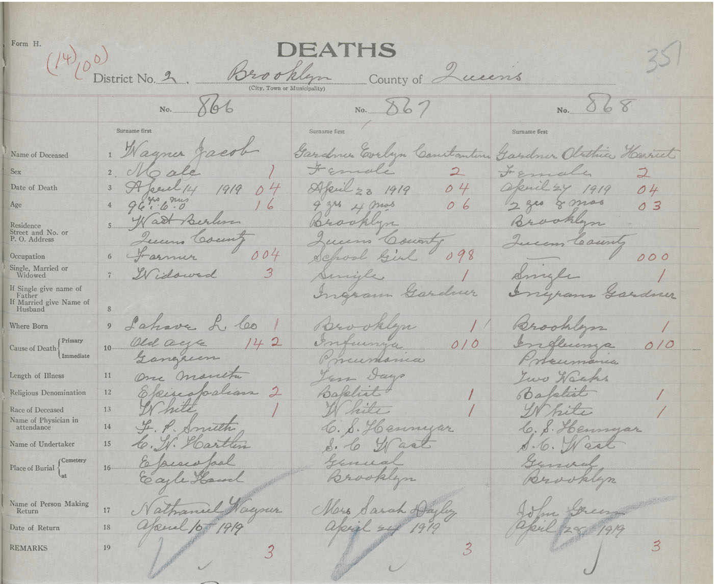 Death Registration: Year: 1919 book: 46 page: 361 number: 868
